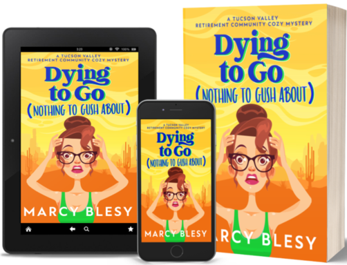 Dying to Go / Nothing to Gush About is the first book in author Marcy Blesy’s new cozy Tucson Valley Retirement Community Mystery series and features former Springfield, Illinois, journalist Rosi Laruee in town to help her parents after her father undergoes a knee replacement. With Rosi only nudging 40, she’s a bit of a fish out of water and not looking forward to spending time in the community designed for older people, but with her life back in Illinois in tatters, it might be the respite she needs. However, when she discovers the body of the local bookstore owner lying in a back aisle of her shop, rest may be the last thing she gets.